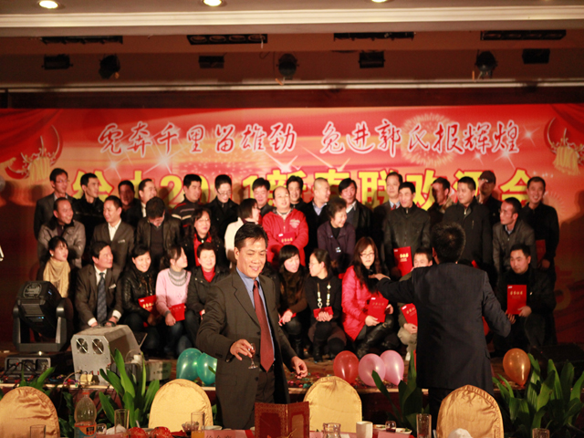 整场酒会分别有文艺汇演、优秀员工及老员工表彰、游戏、抽奖等环节,通过领导互动、奖励积极等方式,董事长郭加迪先生高度认同集团上下在建设郭氏进程中,坚定信心、迎难而上、奋力拼搏的精神风貌。他回顾了集团一年来的艰辛与荣耀,鼓励全体员工调整步伐,再接再厉,为郭氏集团提升国际声誉和开拓更为广阔的市场发展前景不懈努力,不久的将来我们再聚共享胜利果实。参加酒会的除了郭氏高管及集团全体员工,还有远道而来的上海、新疆、宝鸡、莆田回榕职员,和我们共享这片浓浓春意。
