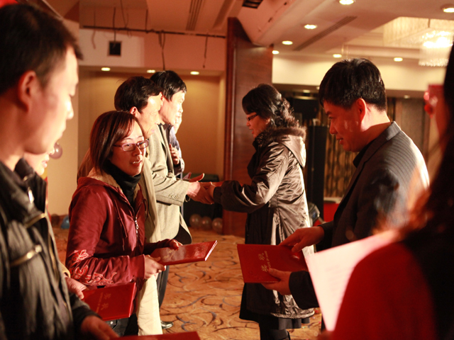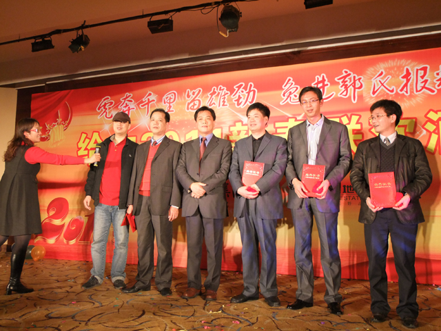 一年辛勤的耕耘,换来累累硕果,在这欢庆的日子里,公司领导对我司的先进表率予以表彰。在林超总监的组织下,在演出空隙林向宇副总裁、谢晓丹副总裁颁发了9个部门优秀奖员工提名奖 分别是成控部谢双梅、总裁办肖亚珠、预算部程钟英、材料采购部黄欣、外联部陈娟、总工办林仕杰、营销部徐和风、香颂物业项目李清、凯旋物业项目杨超;由徐金銮副总裁、章建婵副总裁颁发7个优秀员工奖,分别是 集团人力资源部林汝康、集团财务部张丽珠、陈彬丽、凯旋项目部陈海斌、香颂及家居广场项目部钱庆华、岳鸿雄、兴邦物业毛仁忠 ; 最后由郭加迪董事长颁发27个五年老员工奖,分别是 徐金銮、林向宇、林文贵、叶学工、李晶、陈建中、陆艳红、杨胜峰、程钟英、黄哲镐、谢双梅、陈平妹、胡明、郑辉、周丽芳、姚爱华、陈力楠、林丽君、池银芳、陈建功、岳鸿雄、杨大君、岳国业、施红莲、郑清、陈海斌、 叶毓健;以及4个八年以上老员工奖分别是 章建婵、林凡、张丽珠、丁国庆。郭董表示,郭氏集团正因为有了这一批又一批优秀员工、老员工为楷模,努力工作,郭氏集团的事业才能蒸蒸日上。希望大家再接再厉,在新的一年取得更佳的业绩!新员工们也加加油,明年一起来竞选优秀员工!