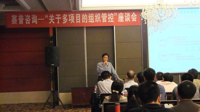 6月15日,集团总部、各区域高管近50人于福州凯旋枫丹会所参加了赛普咨询――“关于多项目的组织管控”座谈会。集团董事长郭加迪先生出席座谈会并作了重要指示。