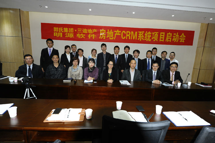 2014年4月2日,郭氏集团·三迪地产明源CRM系统项目启动会在郭氏集团8楼会议室顺利召开,会议由三迪地产福建区域营销总监黄锐主持。本次项目是继2007年三迪地产与明源软件合作销售管理系统后的再次携手,双方领导对本次合作都寄予了高度的重视。郭氏集团执行副总裁庄勤先生、执行董事章建婵女士、副总裁李晶女士、财务总监林伟民先生及明源软件福州分公司总经理林华宏先生、项目总监宋新良先生、项目经理郑燕飞先生等出席了本次会议。