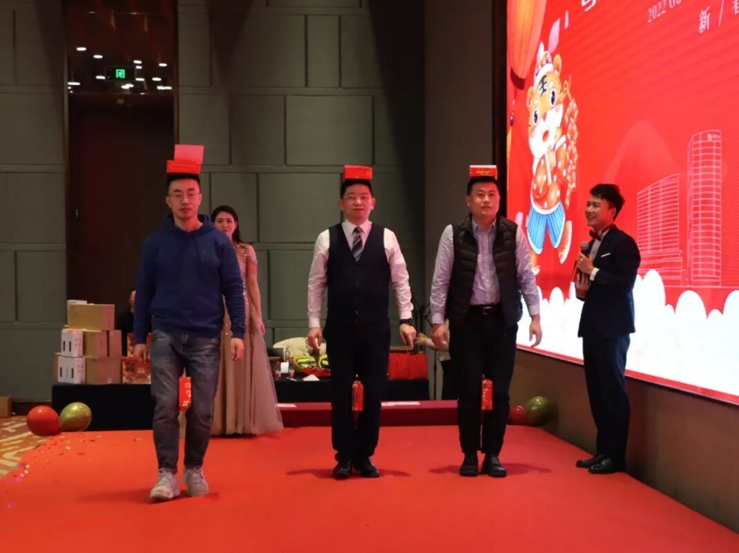 晚会精心准备了多个小游戏,游戏互动活动持续始终。“运钞大队“展现了坚持不懈的意志,”金虎挖宝“展现了团队配合的力量,”我划你猜“展现了搭档配合的默契……奋楫扬帆正当时,厉兵秣马再前行”,2022,郭氏团队,注定不凡!