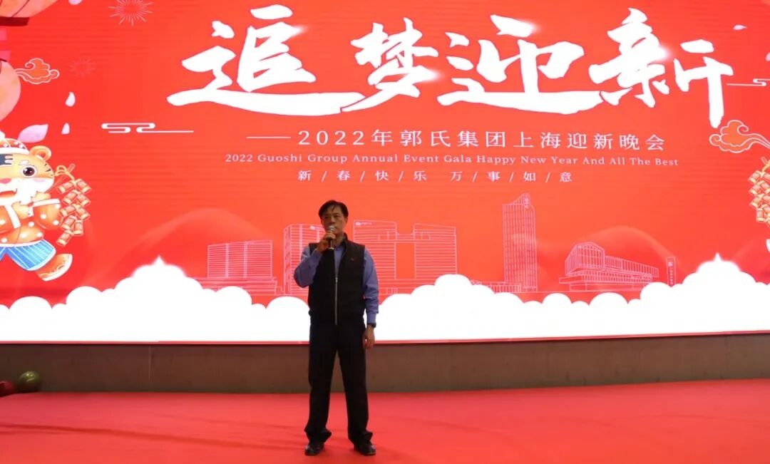 晚会现场,郭氏集团董事长郭加迪新春致辞,他表达了对全体郭氏人新春的问候,表达了对郭氏集团以及全体员工的期待和祝福,他特别对疫情之下仍奋战在一线的郭氏人表示关心和祝福,表示待春节后疫情稳定时,将对优秀员工和优秀团队进行颁奖表彰,希望全体郭氏人在新的一年里虎力十足,追梦迎新,来年迎接更好成绩。