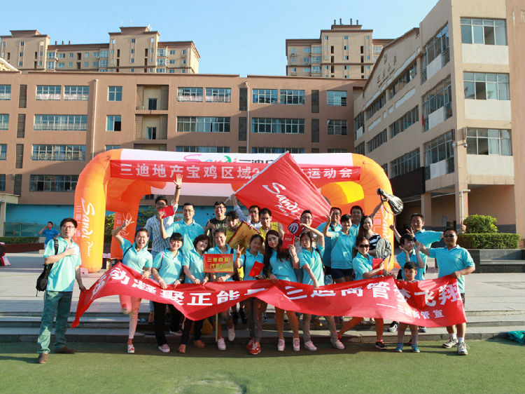 五月榴花照眼明,枝间时见子初成。近日,三迪地产宝鸡区域2015年运动会在三迪小学隆重举行,包括三迪地产、艾帮建设、艾邦物业、锦江之星、佩斯酒店、红星美凯龙、三迪商业等7家子公司积极参与了比赛之中。在这美丽的5月,以“我运动,我健康,我快乐”的青春号角在宝鸡三迪公司的每一个角落吹响, 23日早晨8点30分,在宝鸡三迪小学体育场上,彩旗飘扬,人头攒动,宝鸡三迪集团公司2015年度运动盛会的序幕即将拉开,伴随着《运动员进行曲》的节拍,运动健儿们身着各子公司统一的文化运动衫,迈着有力的步伐依次入场。