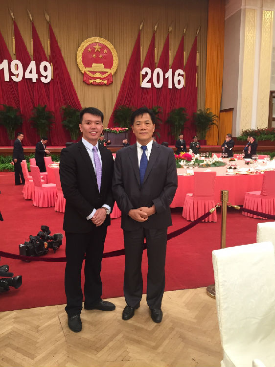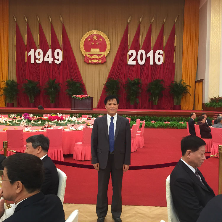 人民大会堂宴会厅灯光璀璨,宾朋欢聚一堂,洋溢着喜庆祥和的气氛。主席台上方高悬着庄严的国徽,“1949—2016”的大字年号在鲜艳的五星红旗映衬下熠熠生辉。