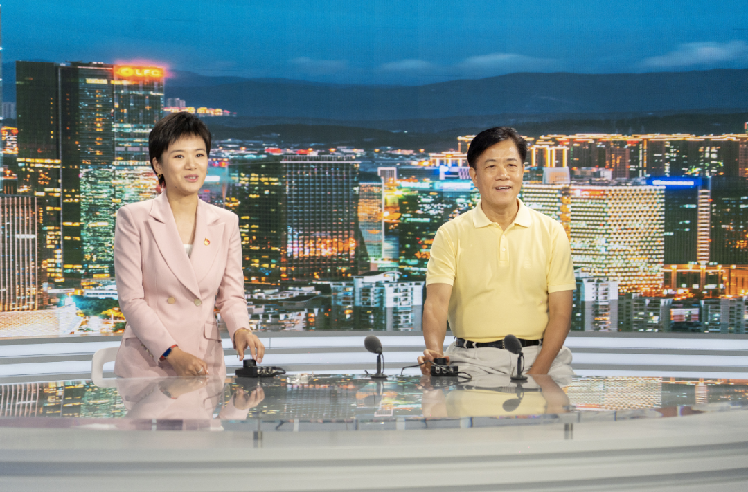 参观期间,董事长郭加迪参观广电展示馆,了解福建广播电视发展概况;参观全媒体演播间、播控中心,了解电视新闻节目录制流程;参观融媒体指挥中心,了解“海博TV”新媒体平台矩阵采编播发情况;在全媒体演播间主播台,董事长郭加迪作为“新闻主播”体验新闻播报,与福建省广播影视集团新闻主播梁婷婷共同体验新闻播报。