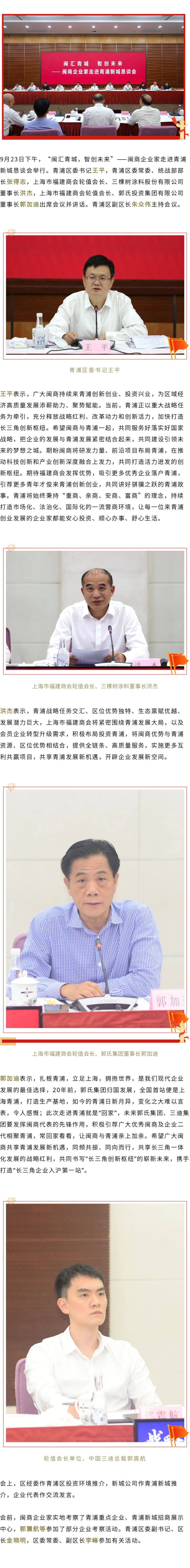 闽汇青城,智创未来!郭加迪携闽商企业家走进青浦新城,青浦区委书记王平出席恳谈会